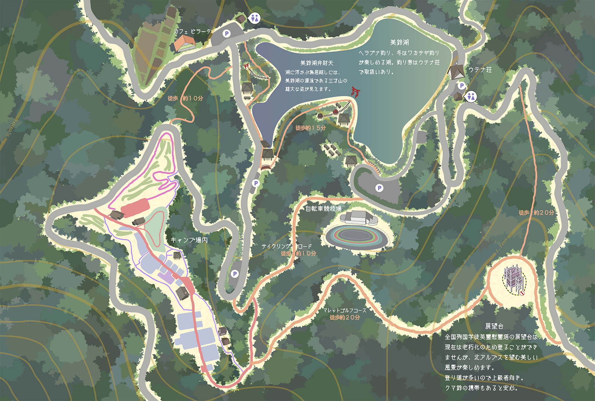 散策ページ上部の地図をダウンロードして、周辺散策に!小さな遊歩道、ここでしか見られない風景。素敵な思い出をお持ち帰りください。